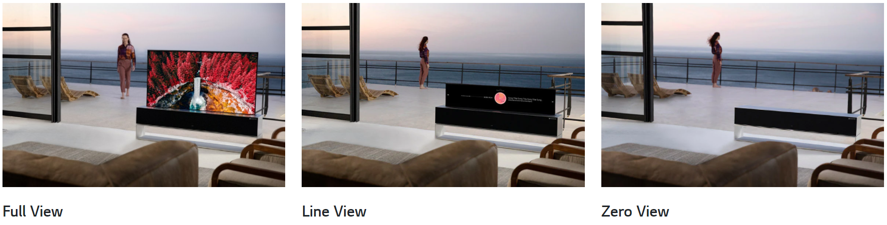 V režimu Full View nabízí 65palcový panel OLED evo a pokročilý procesor televizoru LG Objet ohromující zážitek ze sledování, díky kterému obsah jakéhokoli žánru ožije svěžím a barevně přesným vyjádřením i mimořádným kontrastem. Vedle vynikající kvality obrazu se může tento prémiový televizor pochlubit 4.2kanálovým zvukovým systémem s výkonem 80 W, poskytujícím zvuk jako v kině, který diváka úplně pohltí. V režimu Line View může televizor pomoci uživatelům udržet si přehled o průběhu celého týdne pomocí funkce Date & Clock, v nastavení Music se promění v praktický hudební přehrávač a v nastavení Gallery zobrazí sbírku exkluzivních snímků s vesmírnou a přírodní tematikou.