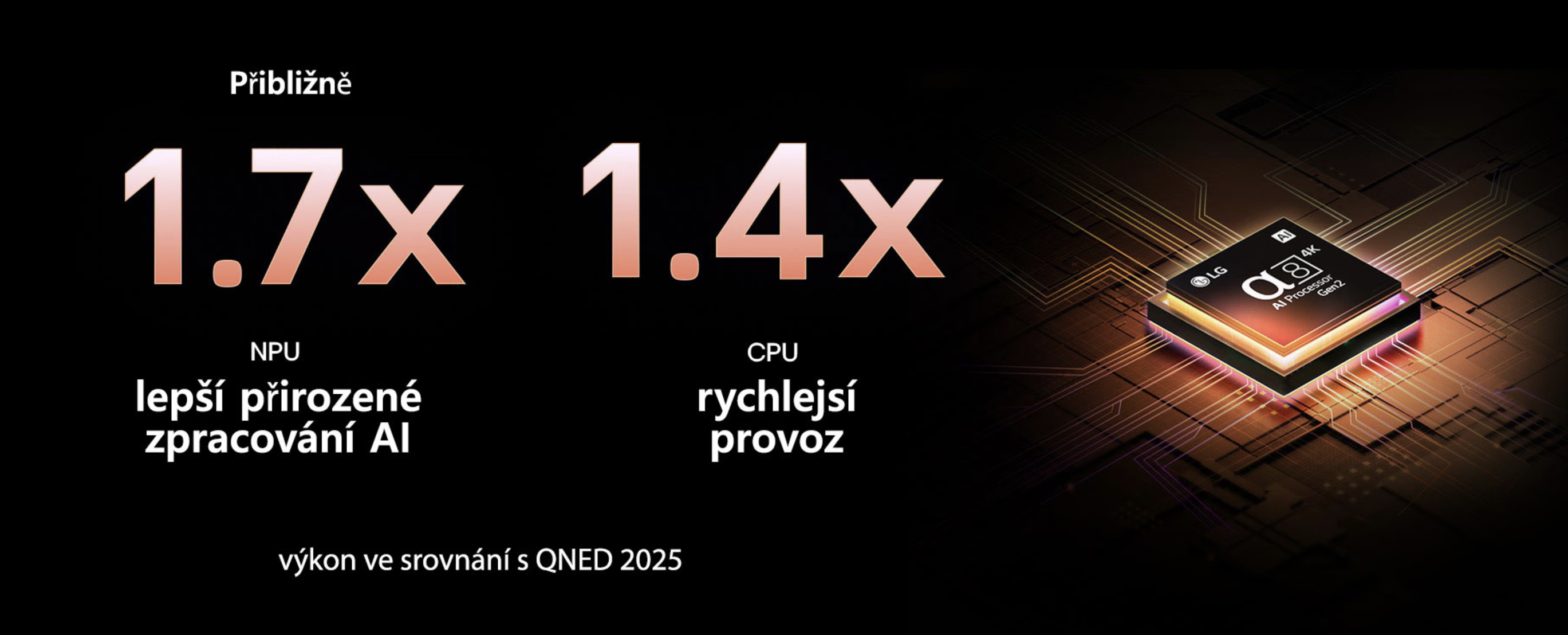 *Ve srovnání se základním modelem Smart TV s procesorem alpha 7 AI Gen8 ze stejného roku na základě interního srovnání specifikací.