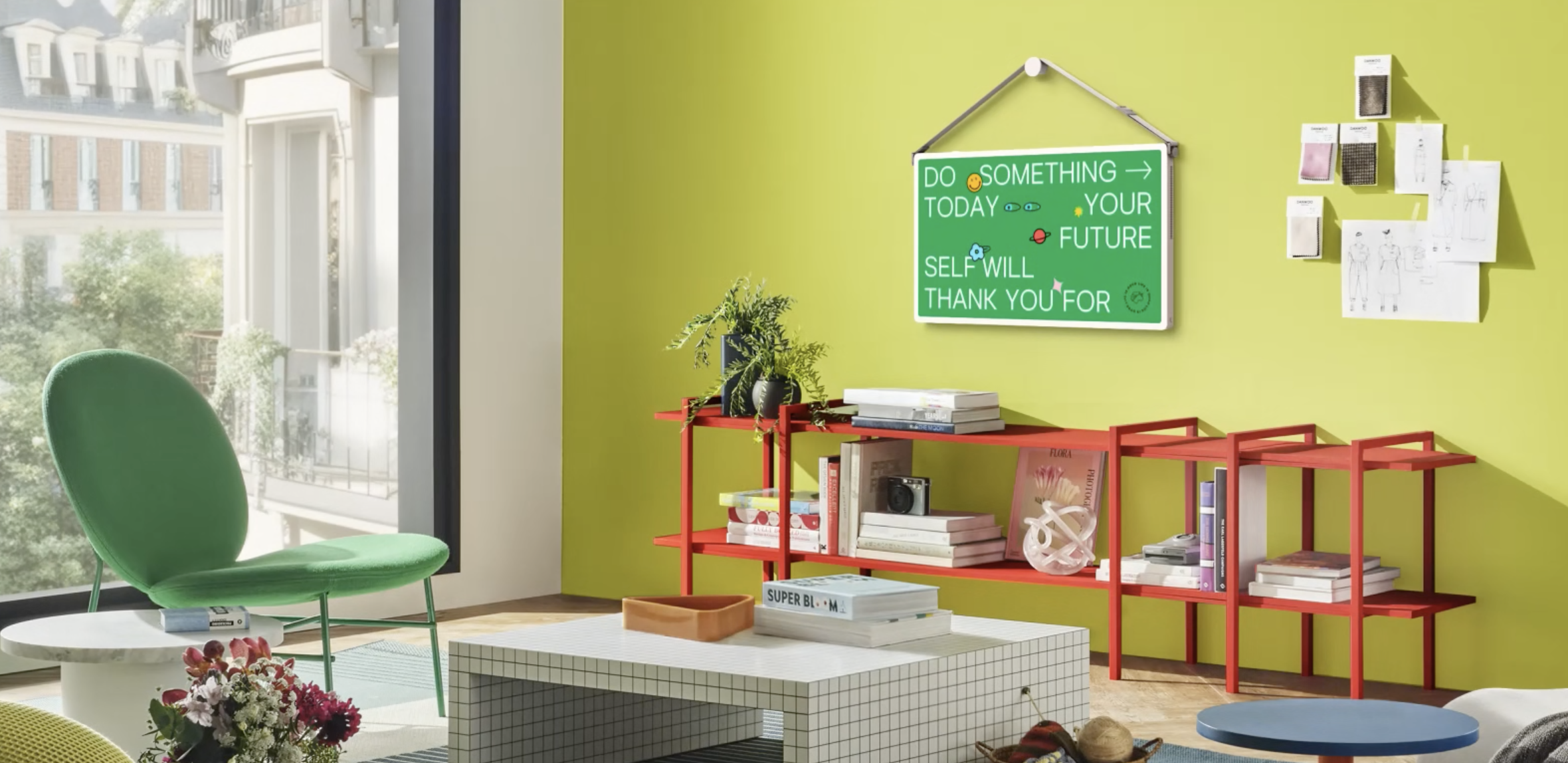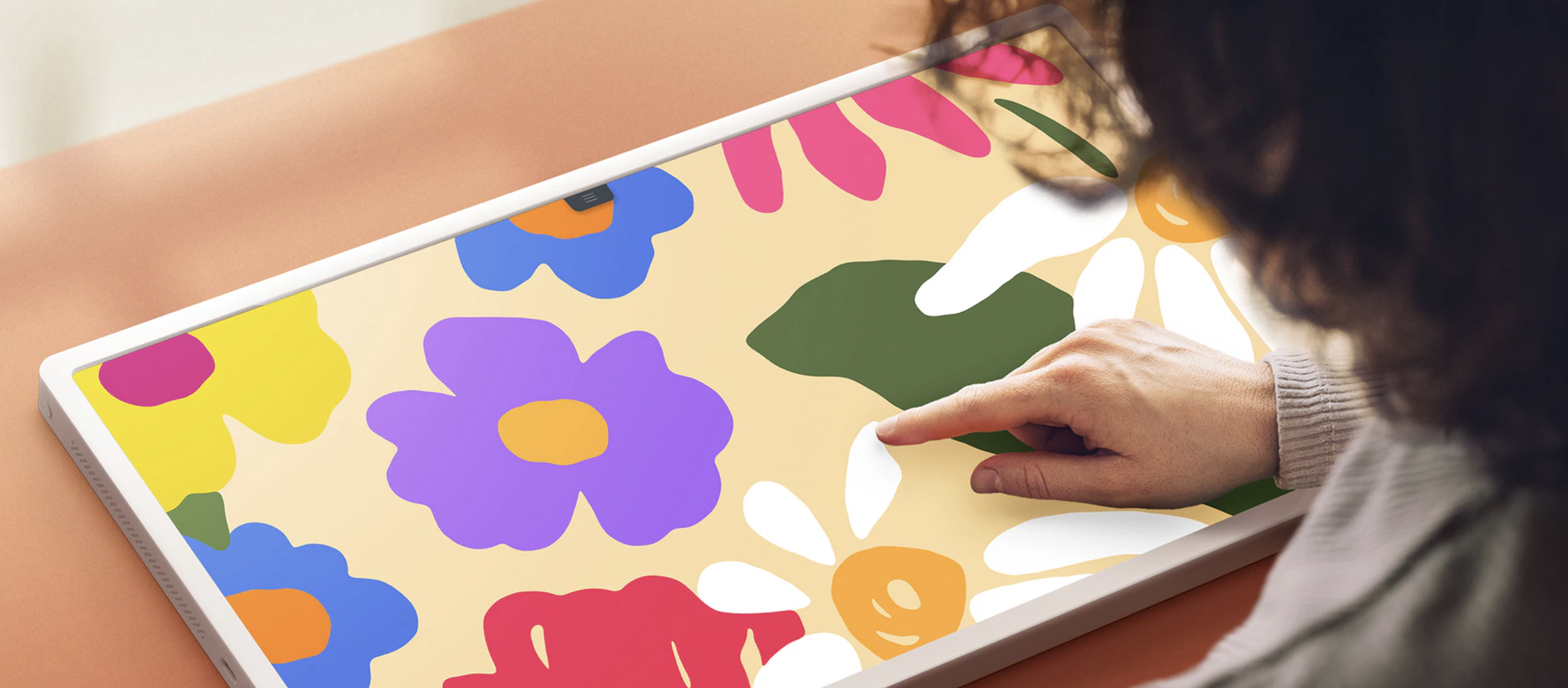 S aplikací Let's Draw proměňte své nápady v umění Tvořte přímo na dotykové obrazovce a své výtvory si kdykoli vystavte díky funkci Always On Display.