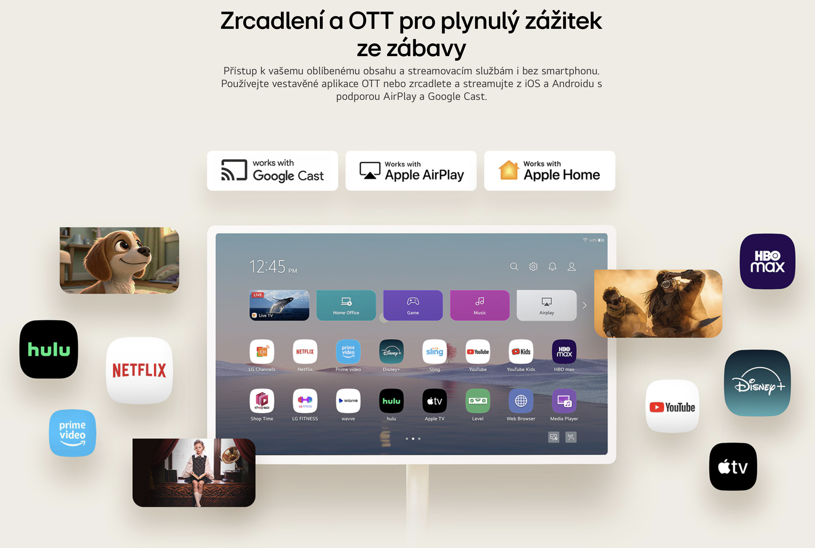 - AirPlay, Apple Home a Google Cast