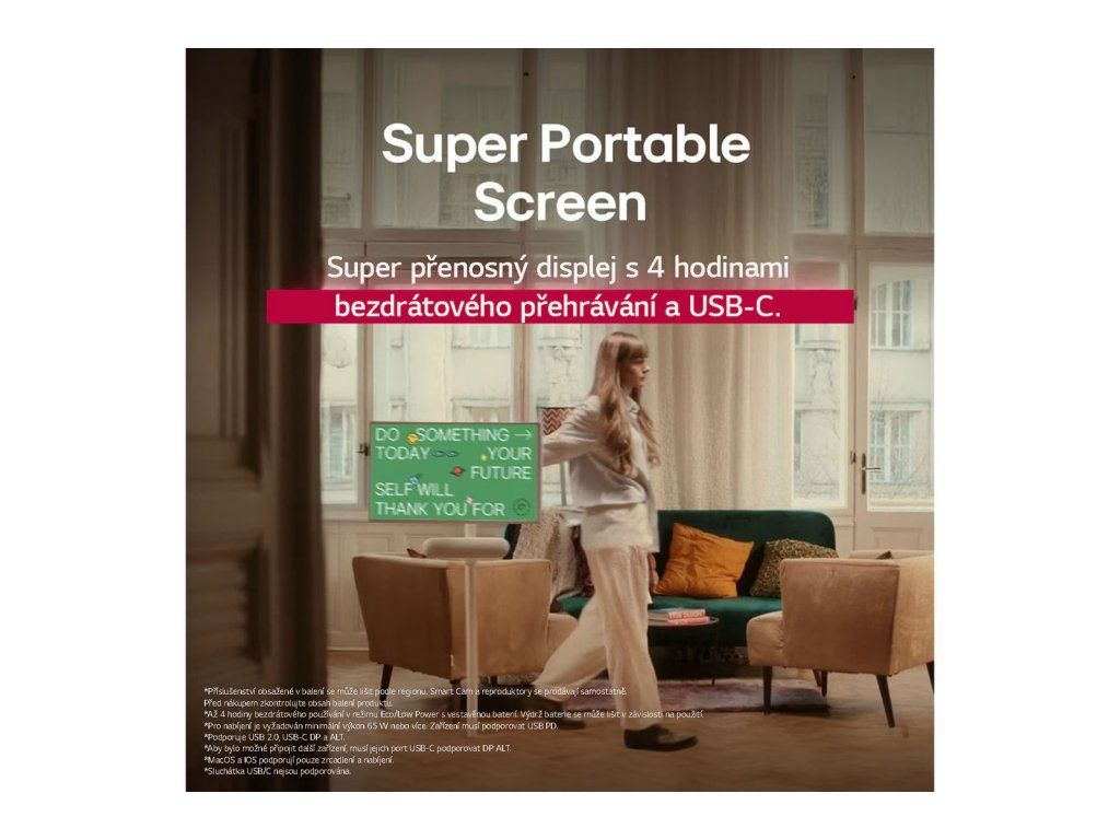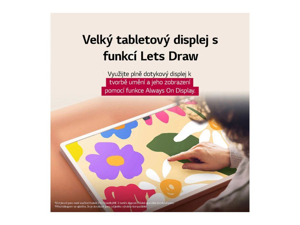 *LG StanbyME 2 je displej, který pracuje na platformě LG webOS. Ačkoli nabízí přenosnost podobnou tabletu, jedná se o produkt, který využívá operační systém založený na televizi.