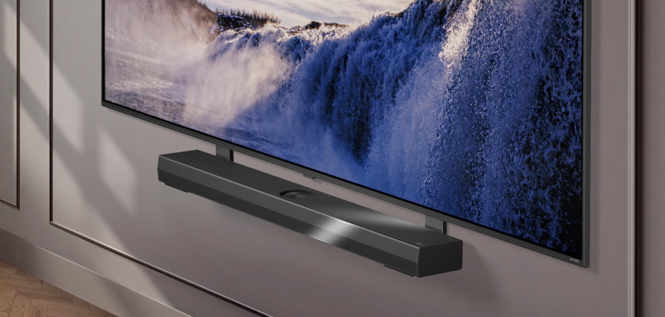 Díky držáku Synergy Bracket snadno umístíte LG Soundbar přímo na zavěšený televizor – pro ideální zvukový výkon a elegantní vzhled v jednom.