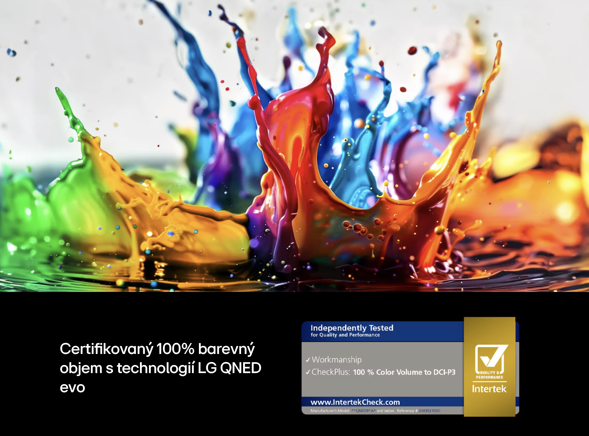 *QNED a QNED evo využívají různá barevná řešení s nejnovější a unikátní technologií širokého barevného gamutu od LG, která nahrazuje kvantové tečky.