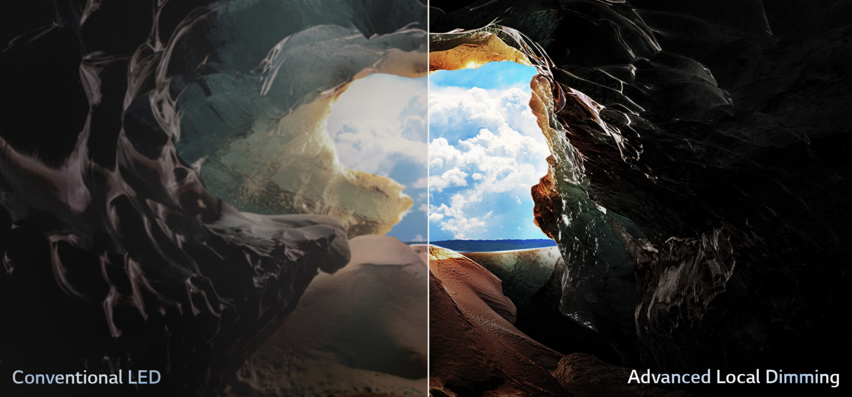 Technologie Advanced Local Dimming inteligentně ovládá podsvícení v jednotlivých zónách, čímž zajišťuje lepší kontrast a zřetelnější detaily i ve tmavých nebo velmi světlých scénách.
