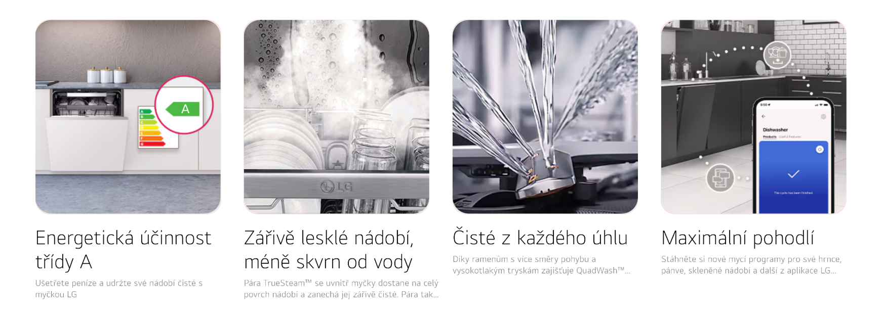 *Ve srovnání s modelem LG bez parní funkce. Na základě srovnání počtu vodních skvrn u modelů LG DFB325 (s parní funkcí) a DFB415 (bez parní funkce) podle interních testů LG.