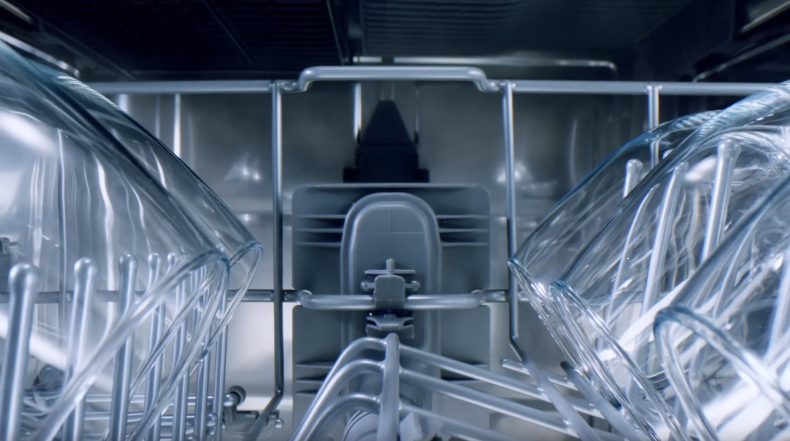 QuadWash™ používá čtyři ramena k preciznímu oplachu každého kusu nádobí, zatímco technologie Dual Zone Wash umožňuje nastavit tlak vody pro horní a spodní koš individuálně.