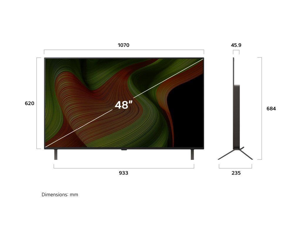 | Rozměry - TV bez stojanu (Š x V x H): | 1 070 x 620 x 45,9 mm |