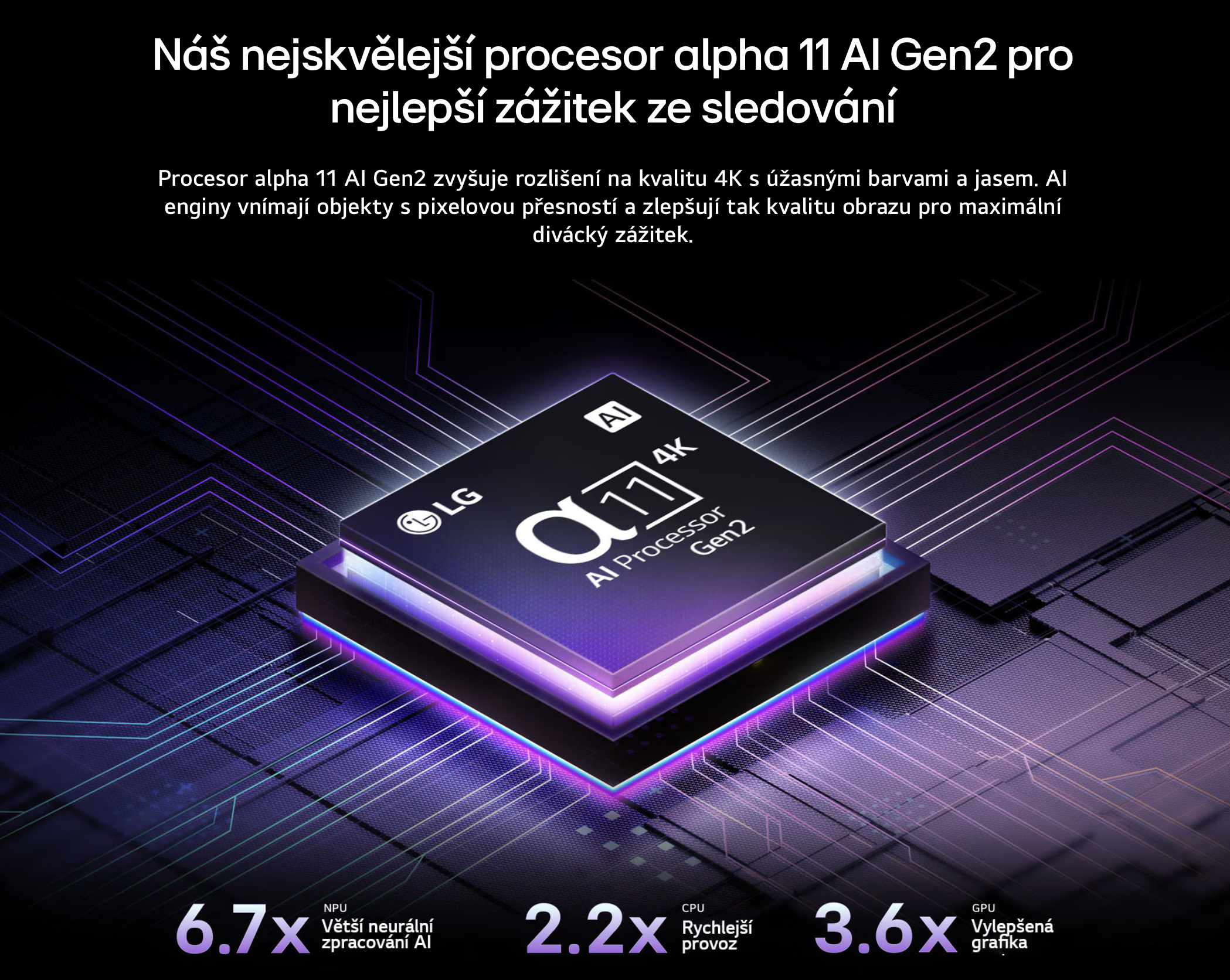 *Ve srovnání se základním modelem Smart TV s procesorem alpha 7 AI Gen8 ze stejného roku na základě interního srovnání specifikací.