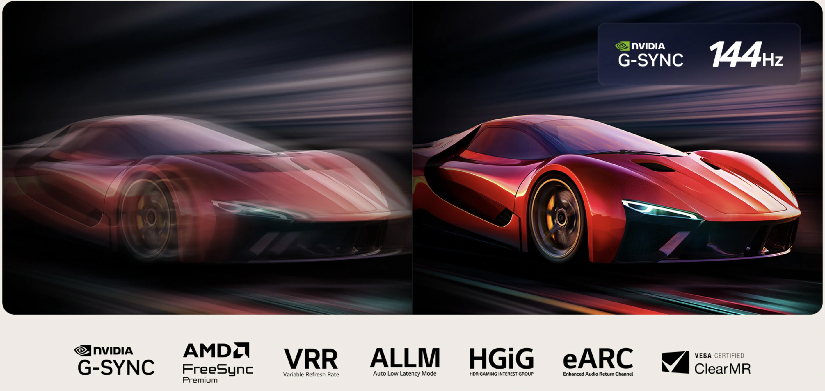 Obnovovací frekvence až 144 Hz a technologie OLED Motion Pro minimalizují rozmazání i při rychlých scénách.