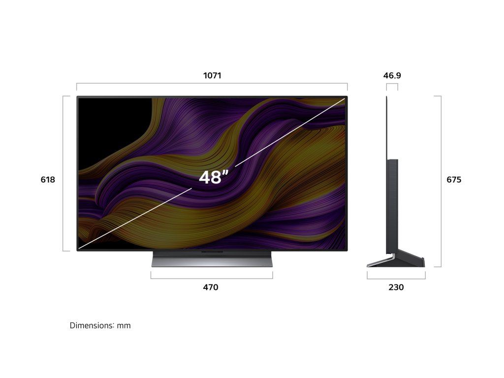 | Rozměry - TV bez stojanu (Š x V x H): | 1 071 x 618 x 46,9 mm |