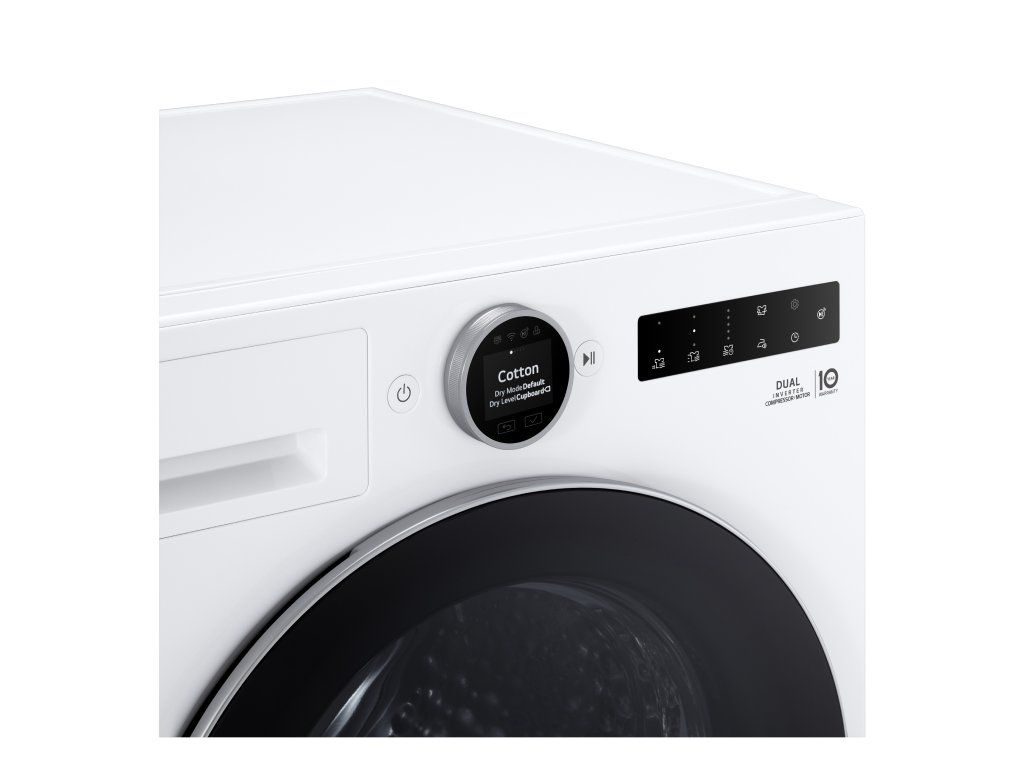 Sušička LG – duální invertorové tepelné čerpadlo - záruka 10 LET, Kapacita 9 kg, Energetická tř. B, 17 programů + další programy v aplikaci, Intuitivní digitální ovládání, Automatické čištění kondenzátoru až 3x během cyklu, Redukce až 99,9 % alergenů, AI Dry – inteligentní sušení, Zásobník na kondenzát - 4,9 l, Smart Pairing™, Smart ThinQ™ s Wi-Fi, EcoHybrid™, Rozměry: 600x850x660 mm (š x v x h)