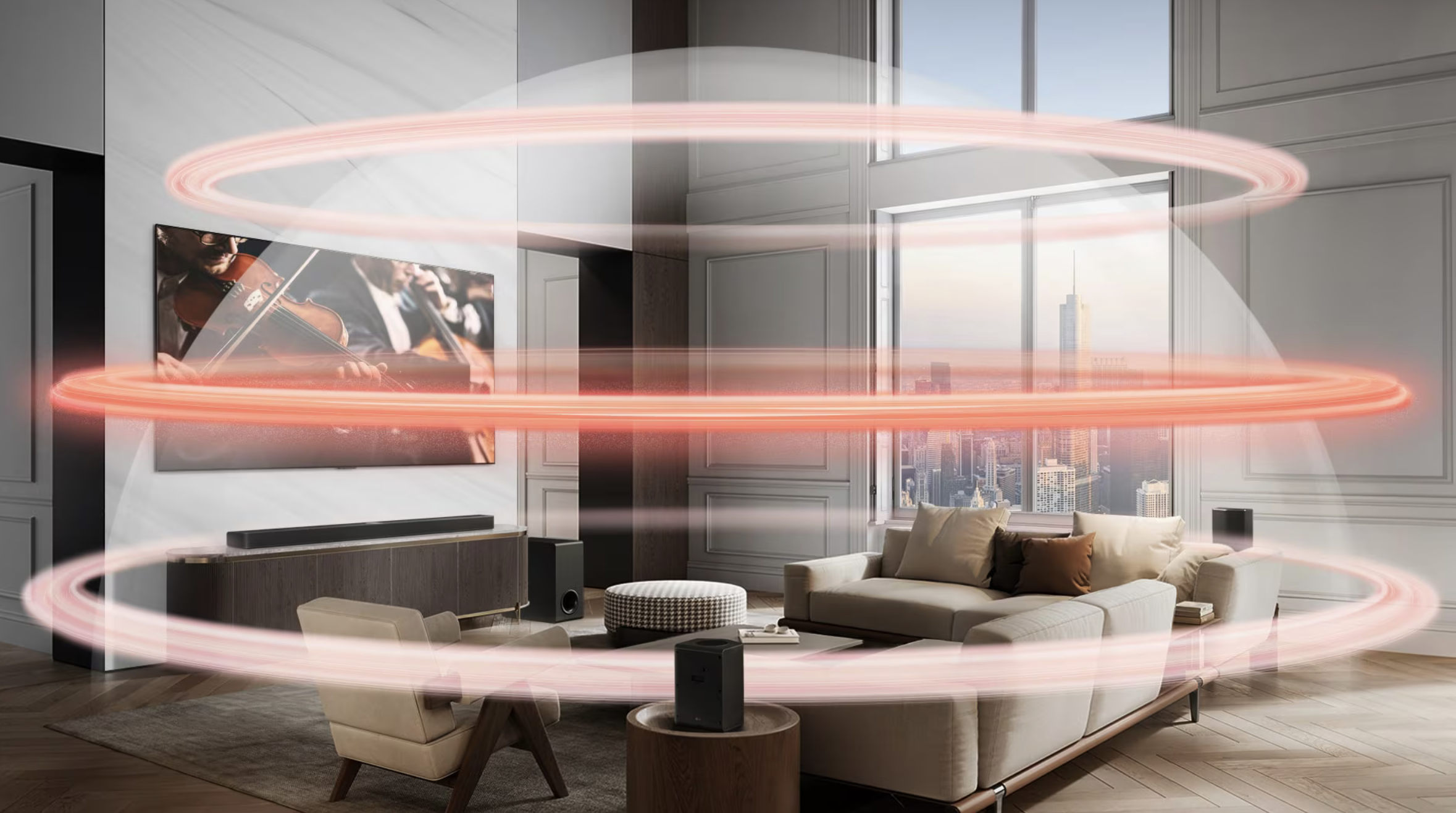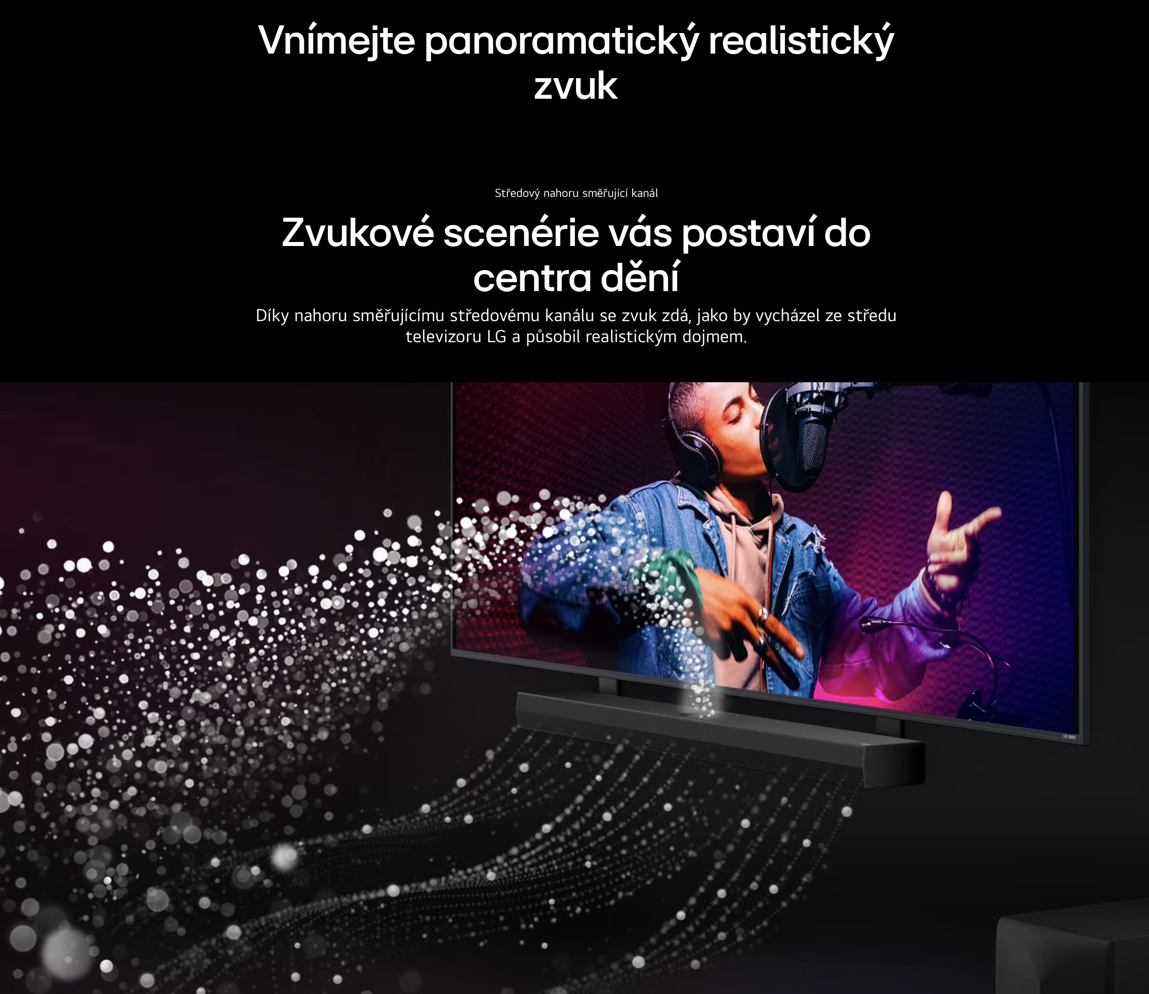 Tříúrovňový prostorový zvuk rozšiřuje audio o virtuální vrstvu, která vás obklopí ze všech stran a vytvoří dojem bohaté zvukové kopule s větší hloubkou a realističností.