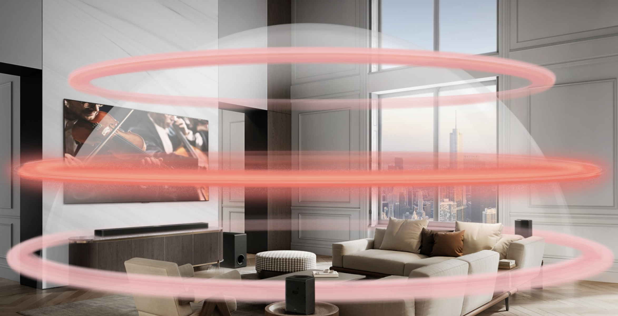 LG Soundbar promění běžný dvoukanálový zvuk v pohlcující vícekanálový zážitek. Výsledkem je bohatý, dynamický a prostorově výrazný zvuk, který oživí každý tón a naplní místnost energií.