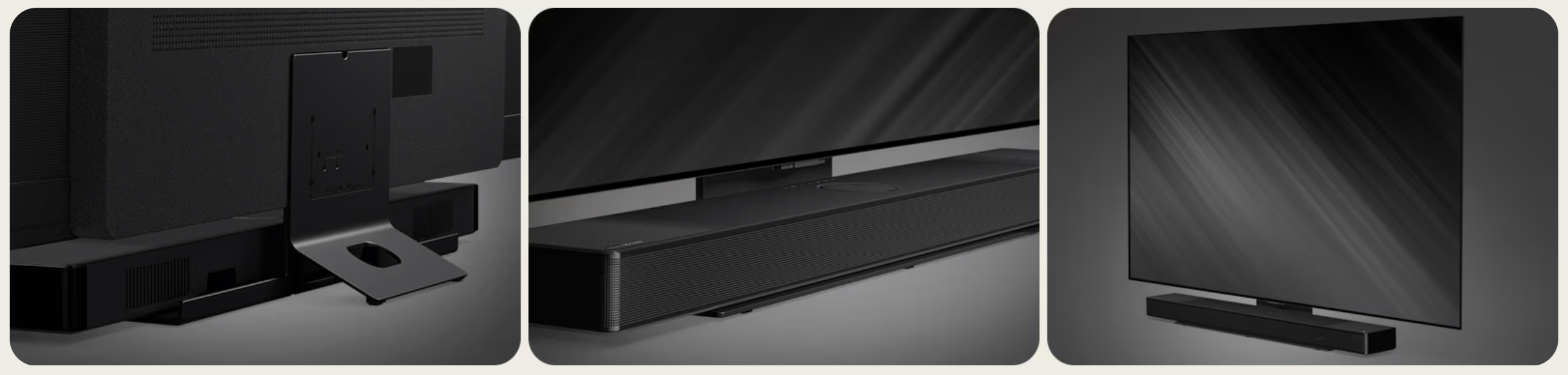 Speciálně navržený propojovací díl zajišťuje ideální umístění soundbaru pro dosažení nejlepších zvukových výsledků. Umožňuje precizní sladění s televizorem a zachovává čistý, elegantní design – ať už je soundbar umístěn na TV stolku, nebo upevněn na stěnu.