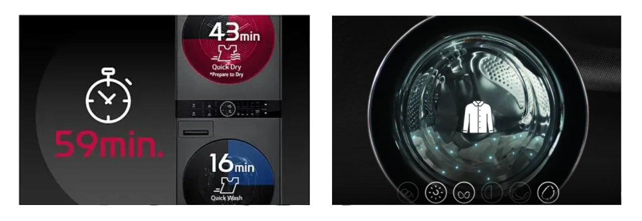 Rychlé programy: TurboWash 360° vypere prádlo za 39 minut, kombinace praní a sušení za 59 minut
