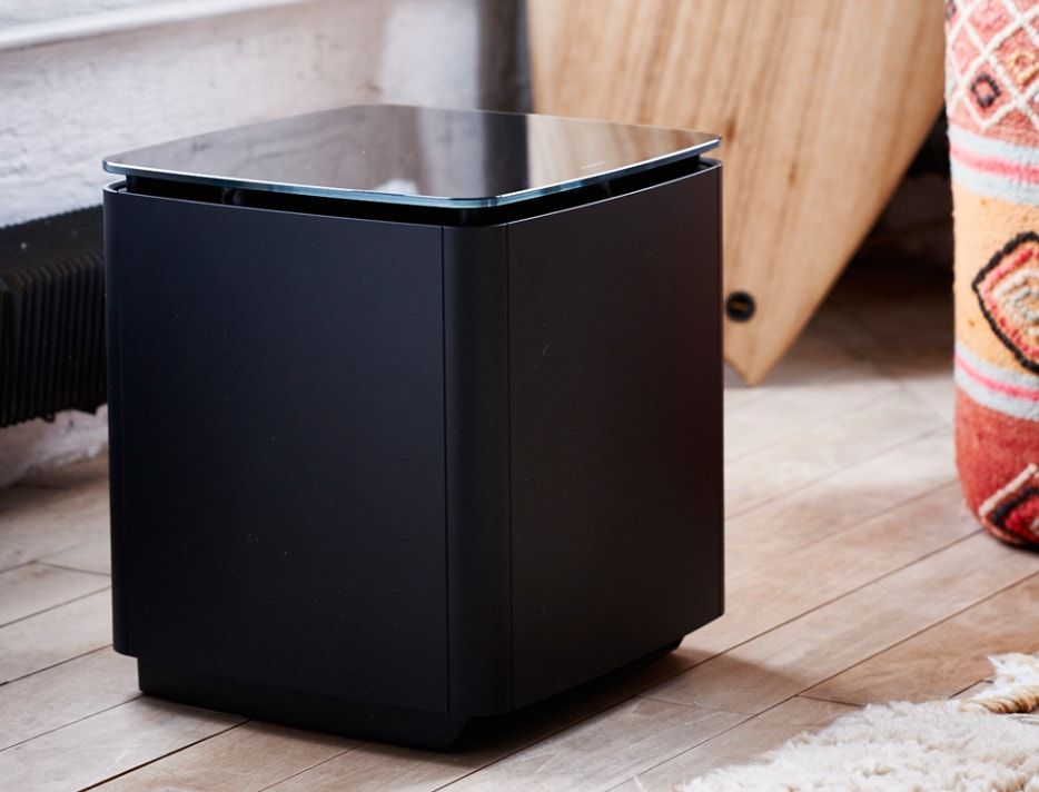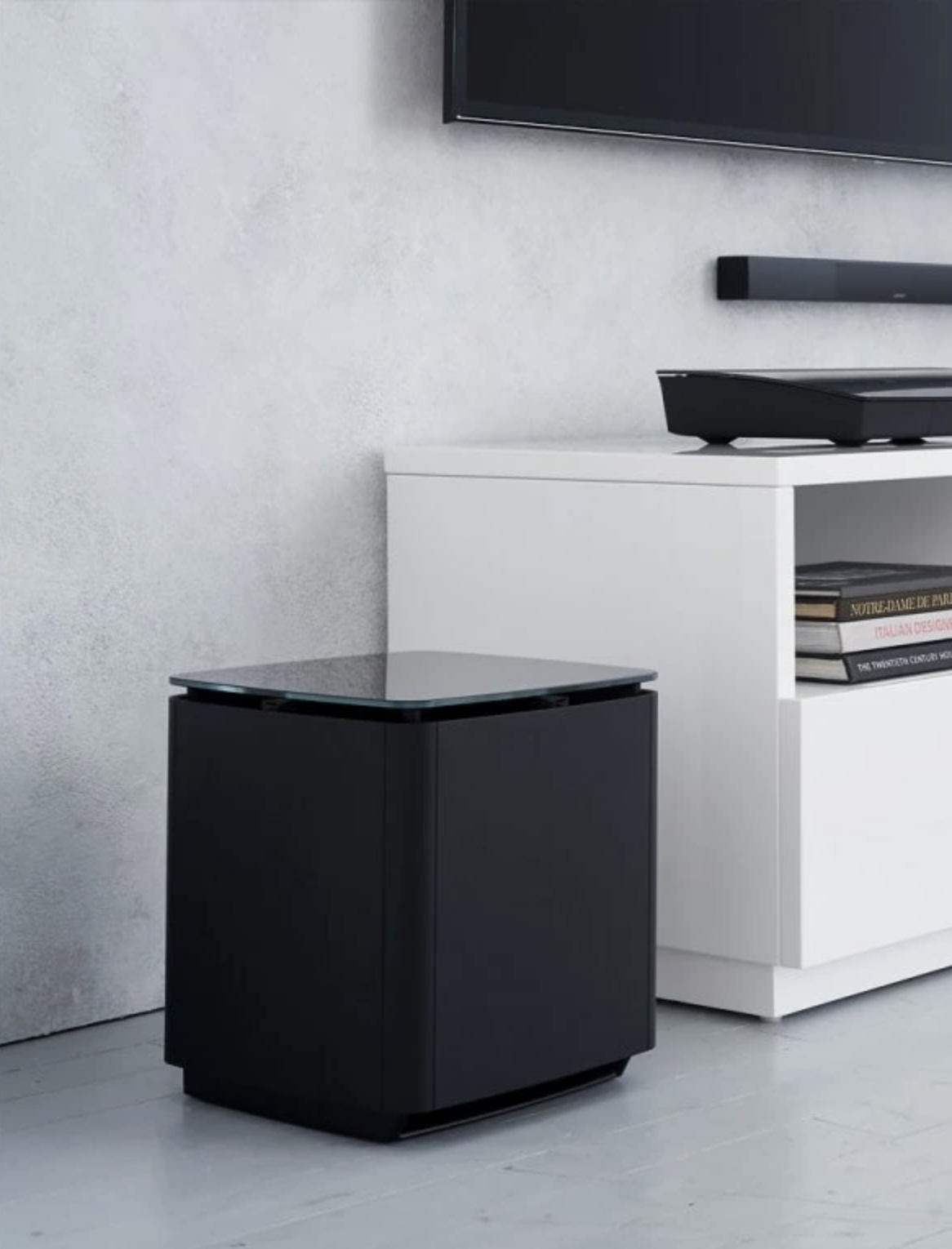 Kromě špičkového zvuku zaujme i elegantním designem s lesklou povrchovou úpravou a jemně zaoblenými hranami. Subwoofer tak nepůsobí rušivě, ale naopak se stává stylovou součástí interiéru. Díky kompaktním rozměrům 294,9 × 325,1 × 294,9 mm jej snadno umístíte i do menšího obývacího pokoje, přičemž stabilní konstrukce s hmotností 13,6 kg zajišťuje pevný a čistý projev basů.
