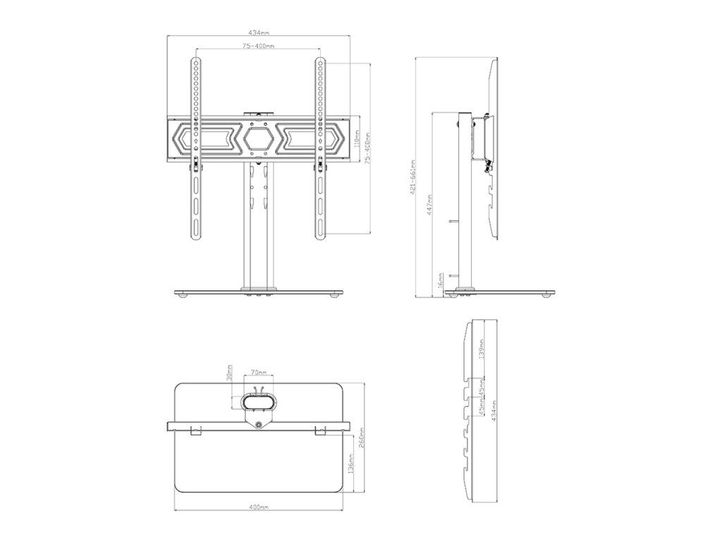 | Rozteč uchycení televizoru | |