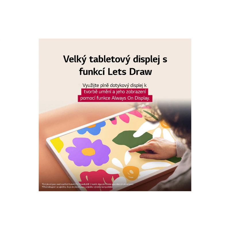*LG StanbyME 2 je displej, který pracuje na platformě LG webOS. Ačkoli nabízí přenosnost podobnou tabletu, jedná se o produkt, který využívá operační systém založený na televizi.