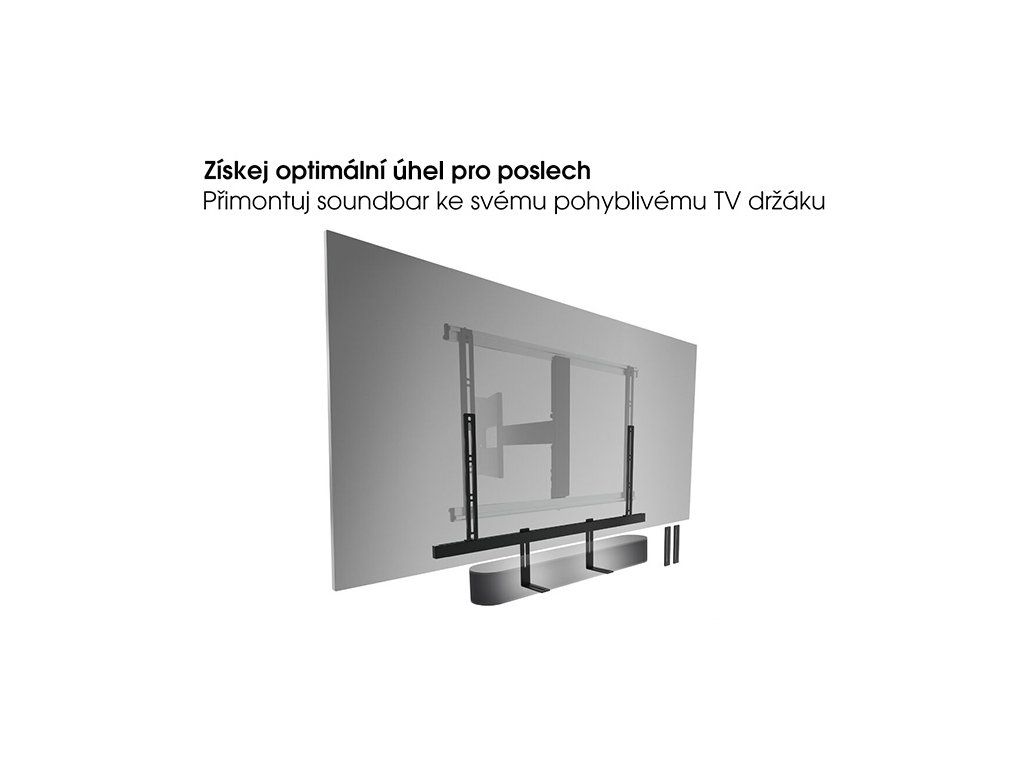 Držák Vogel's Sound 3550 lze připevnit k většině TV držáků. Při natáčení nebo naklápění televizoru se pohybuje i soundbar, takže obraz i zvuk zůstávají vždy dokonale sladěné bez ztráty kvality.